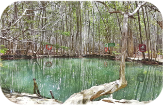 En la reserva puedes disfrutar de las aguas cristalinas del “Cenotes Helechos”, “Cenotes Venados” y el “Cenote Pájaros”, así como también de dos ojos de agua, en donde los visitantes pueden refrescarse.